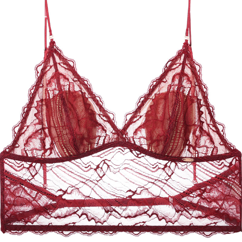 细肩带红色内衣女小胸舒适无痕薄款结婚新娘本命年法式三角杯文胸
