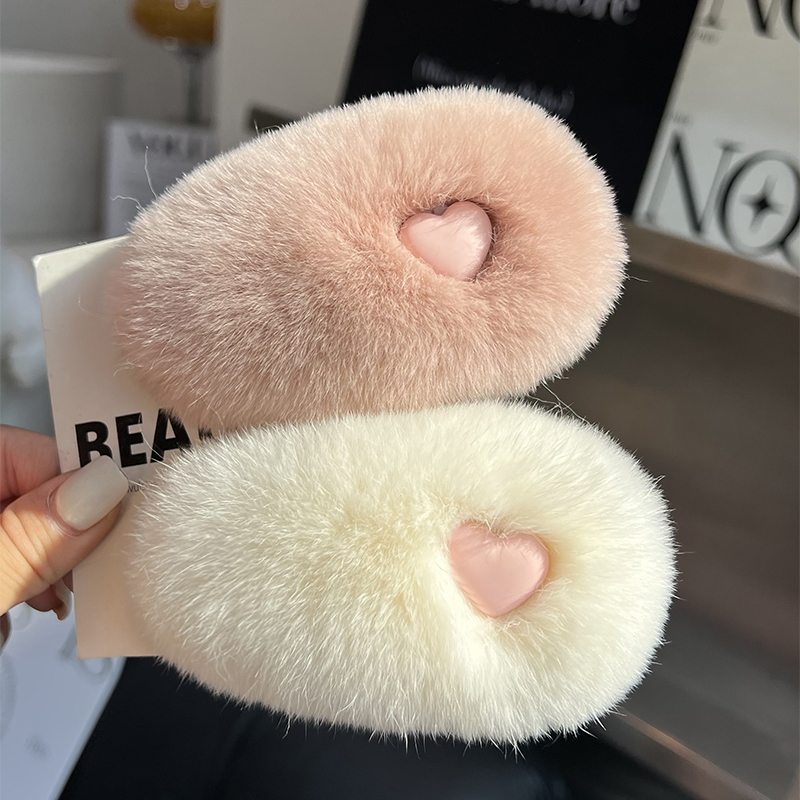 ins水貂毛毛发卡韩国简约纯色皮草bb卡边夹可爱毛绒发夹网红头饰