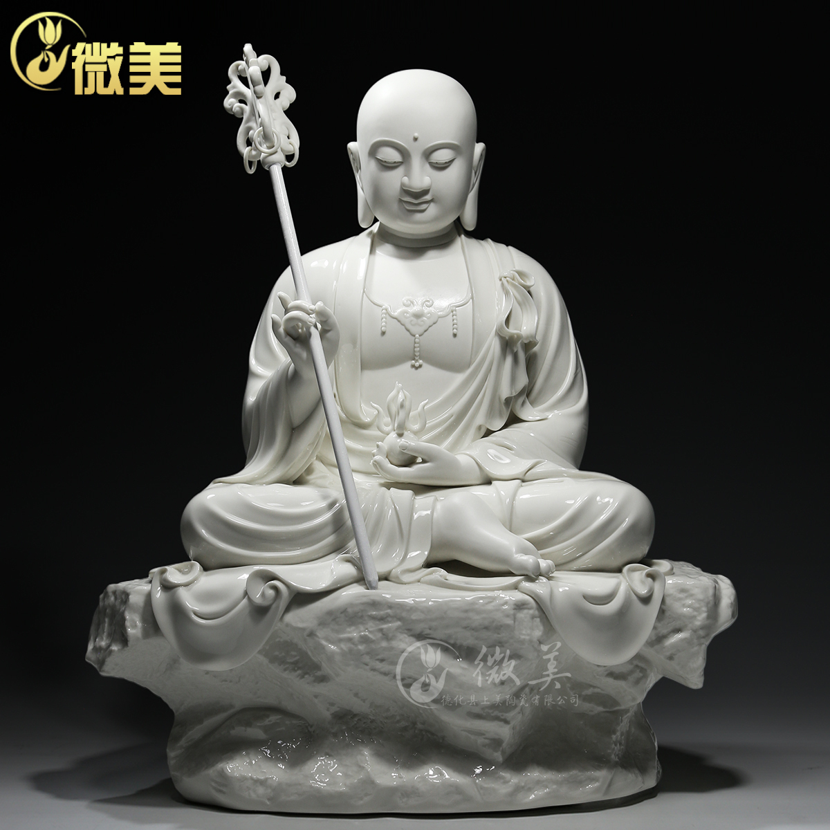 微美德化陶瓷10吋19寸坐石地藏王菩萨像家用供奉地藏佛像禅意摆件