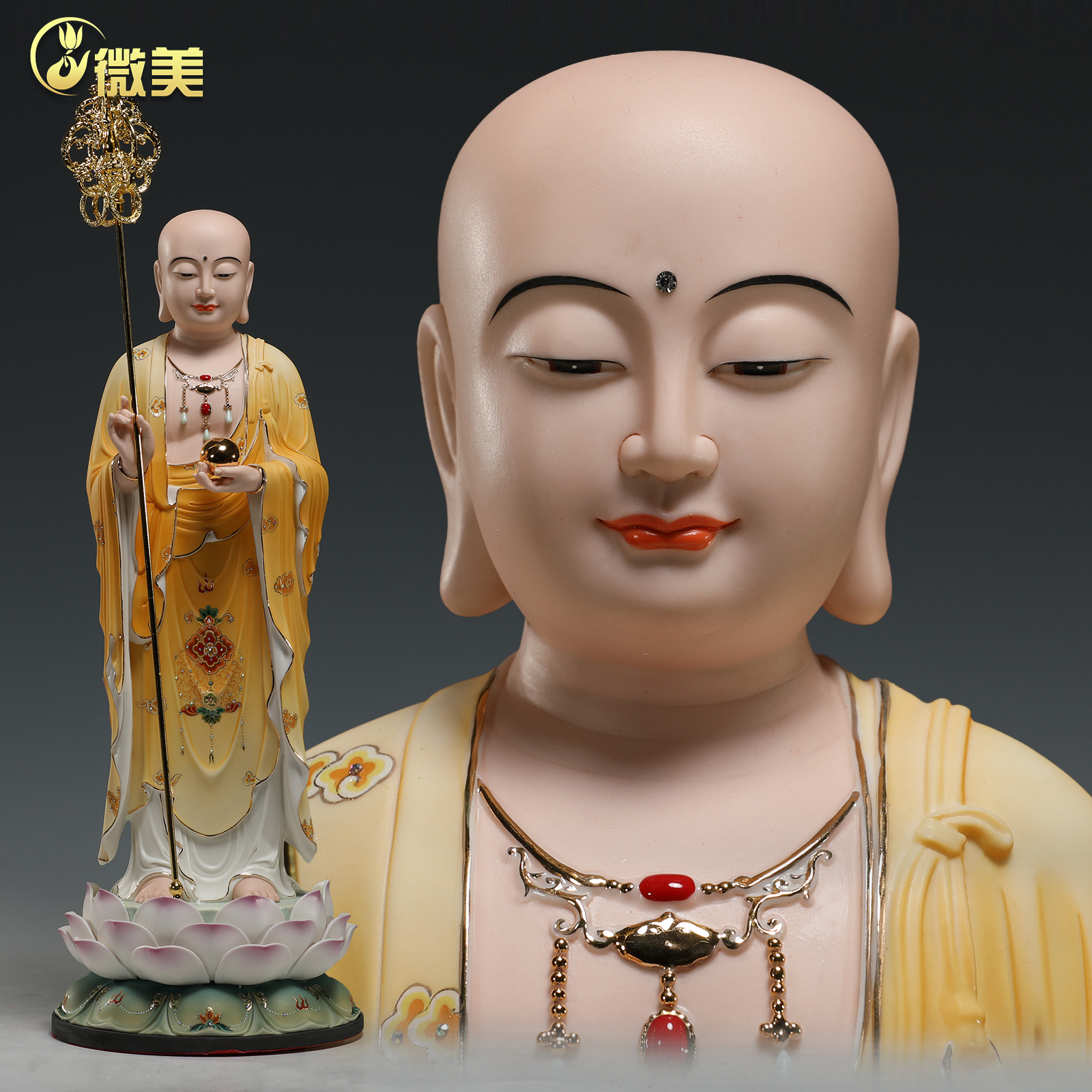 微美陶瓷16至26寸九华山地藏王菩萨像站立莲地藏佛像家用供奉摆件
