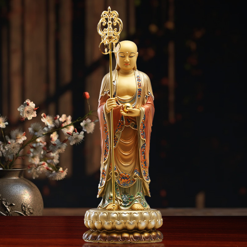 黄铜地藏王菩萨像家用供奉九华山地藏王站像彩绘客厅佛堂铜像大号
