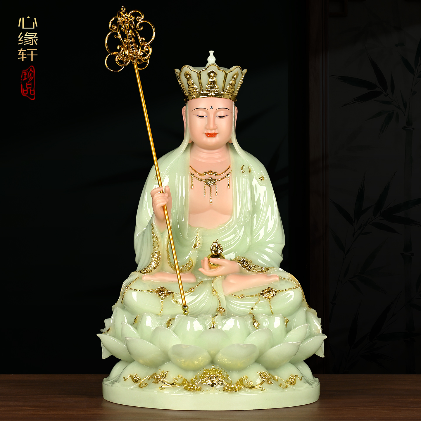 戴玉堂陶瓷九华山坐莲地藏菩萨佛像地藏王菩萨像供奉家用客厅摆件