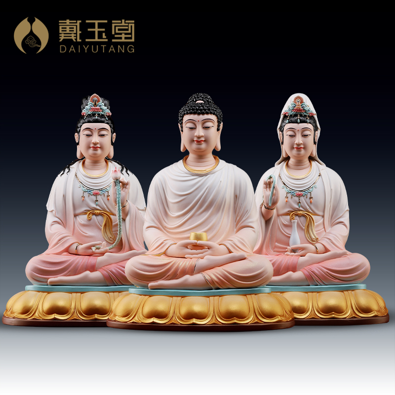 戴玉堂陶瓷阿弥陀佛观音大势至地藏王菩萨像西方三圣娑婆三圣摆件