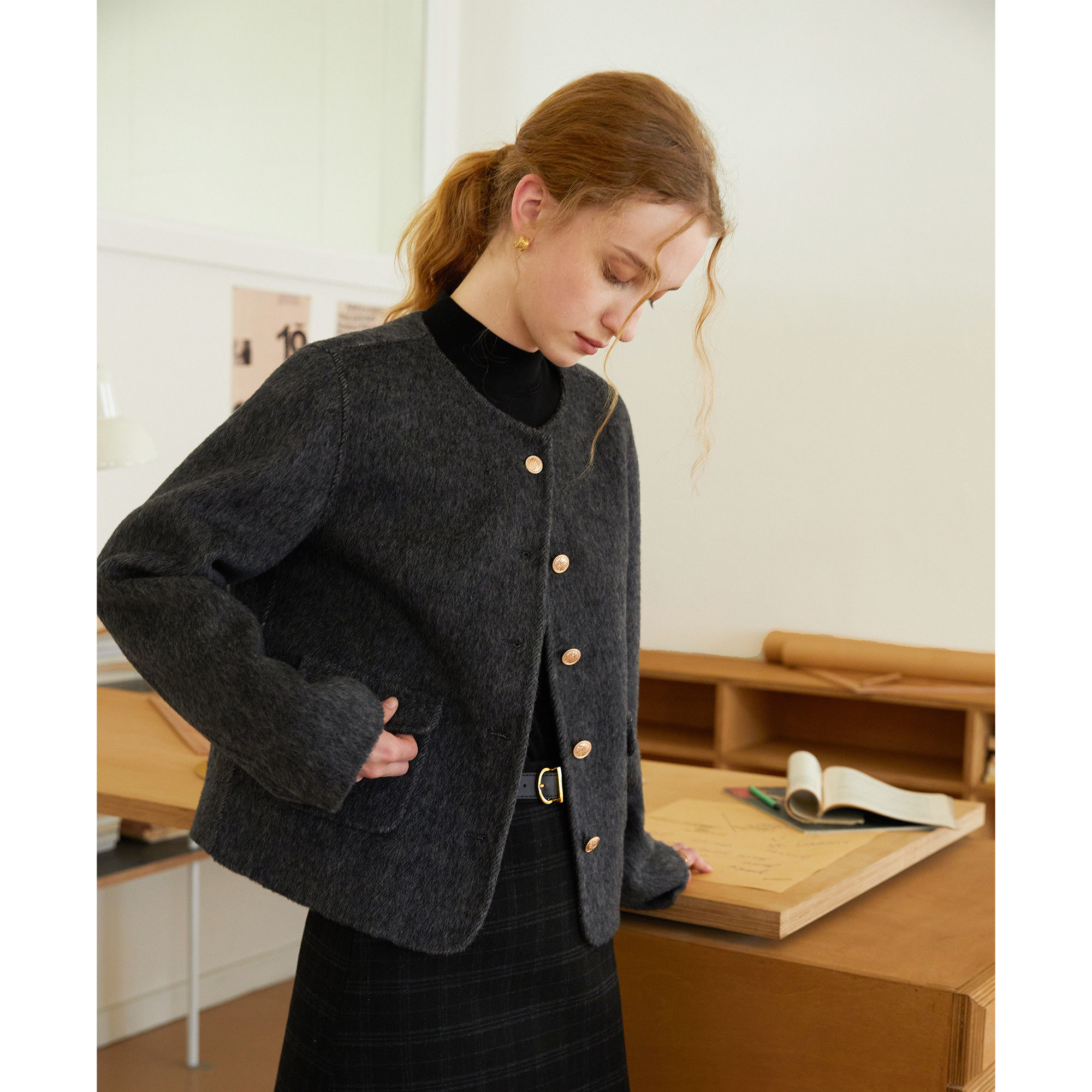 冬季新款反季双面羊绒大衣女短款立领小香风设计感小个子毛呢外套