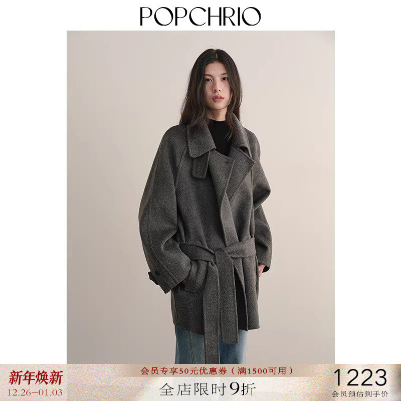 POPCHRIO欧可芮◆苏丽羊毛立领牛角扣双面呢大衣小个子毛呢外套女