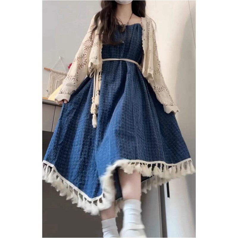 大码女装300斤法式复古流苏吊带连衣裙夏季胖mm260遮肚子气质长裙