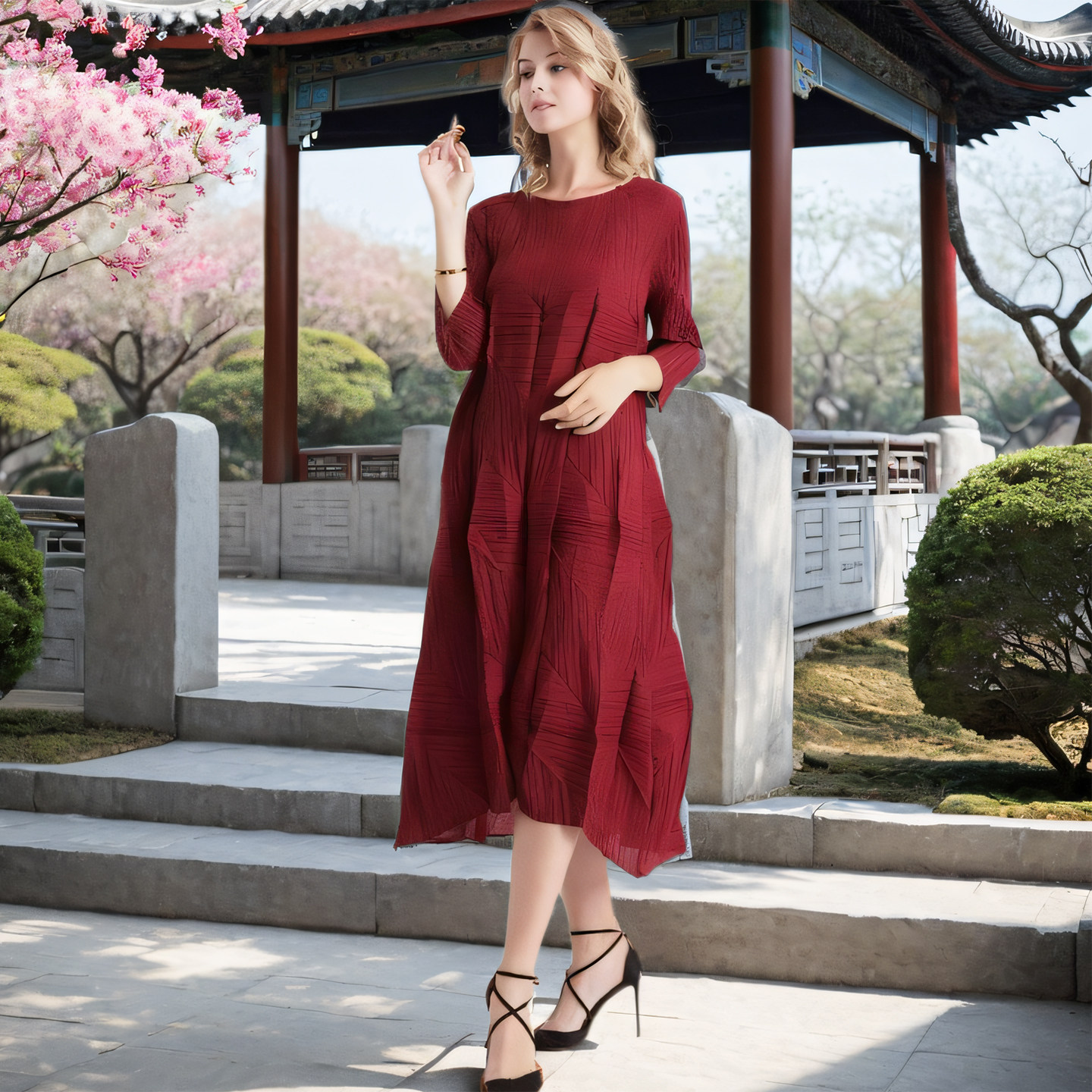 宽松胖胖遮肚子早春棠梨风穿搭连衣裙气质长裙手工折褶皱侘寂裙子