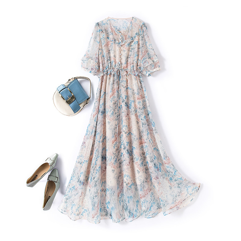 大码女装胖胖妹妹连衣裙夏季2024新款雪纺仙气胖妹妹法式中长裙子