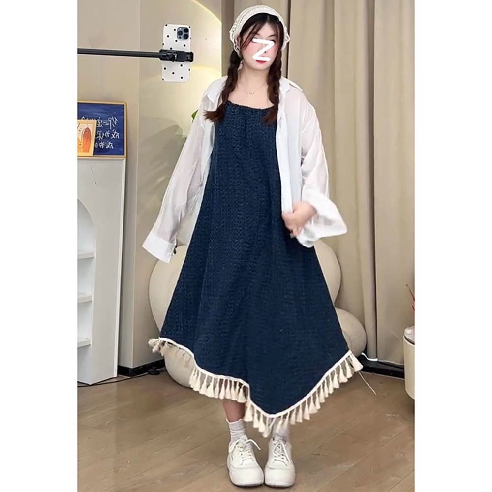 大码女装不规则流苏吊带连衣裙夏季胖mm2-300斤宽松显瘦长裙子ins