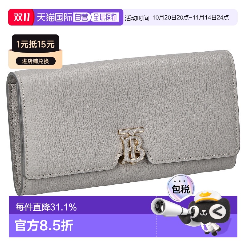 日本直邮BURBERRY博柏利长款钱包灰色女士经典大牌简约风时尚新款