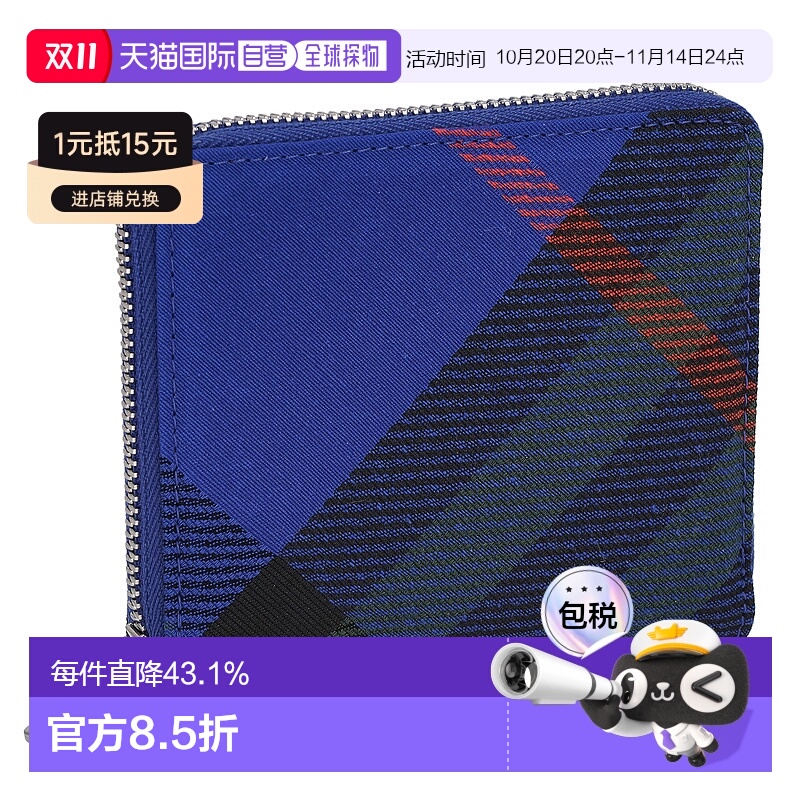 日本直邮BURBERRY博柏利双折钱包经典格子男女通用经典大牌简约风