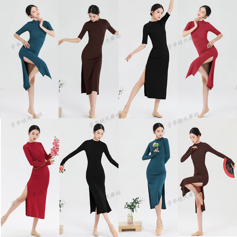弹力修身现代舞演出服长裙古典舞艺考练功表演服开衩连衣裙舞蹈裙