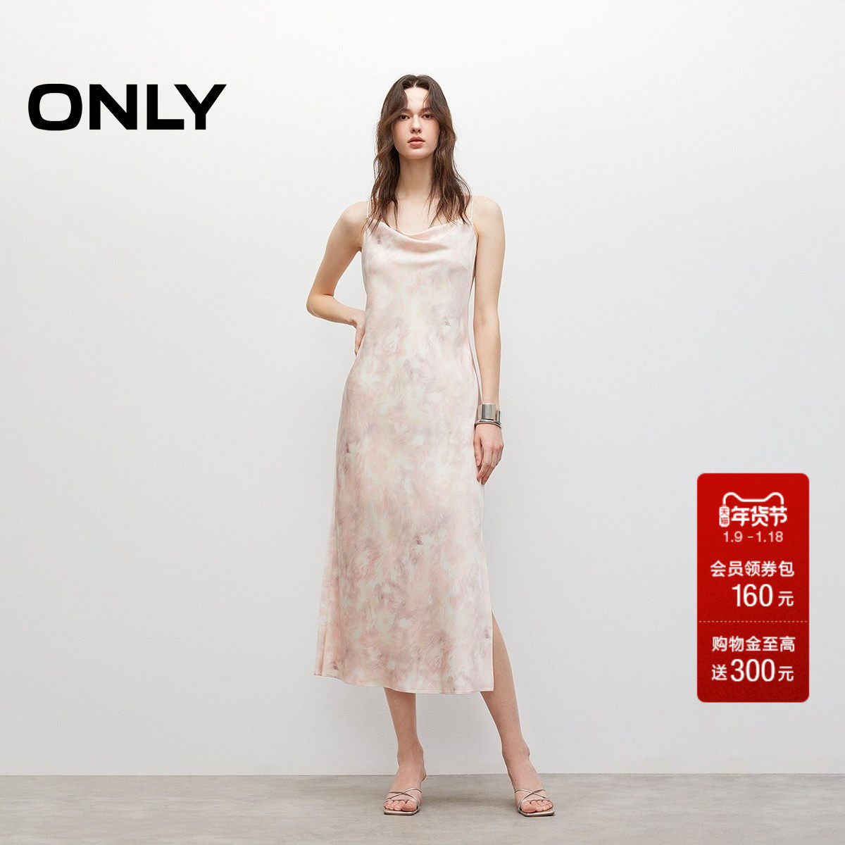 ONLY2025夏季新款优雅浪漫晕染印花吊带荡领中长裙开衩连衣裙女