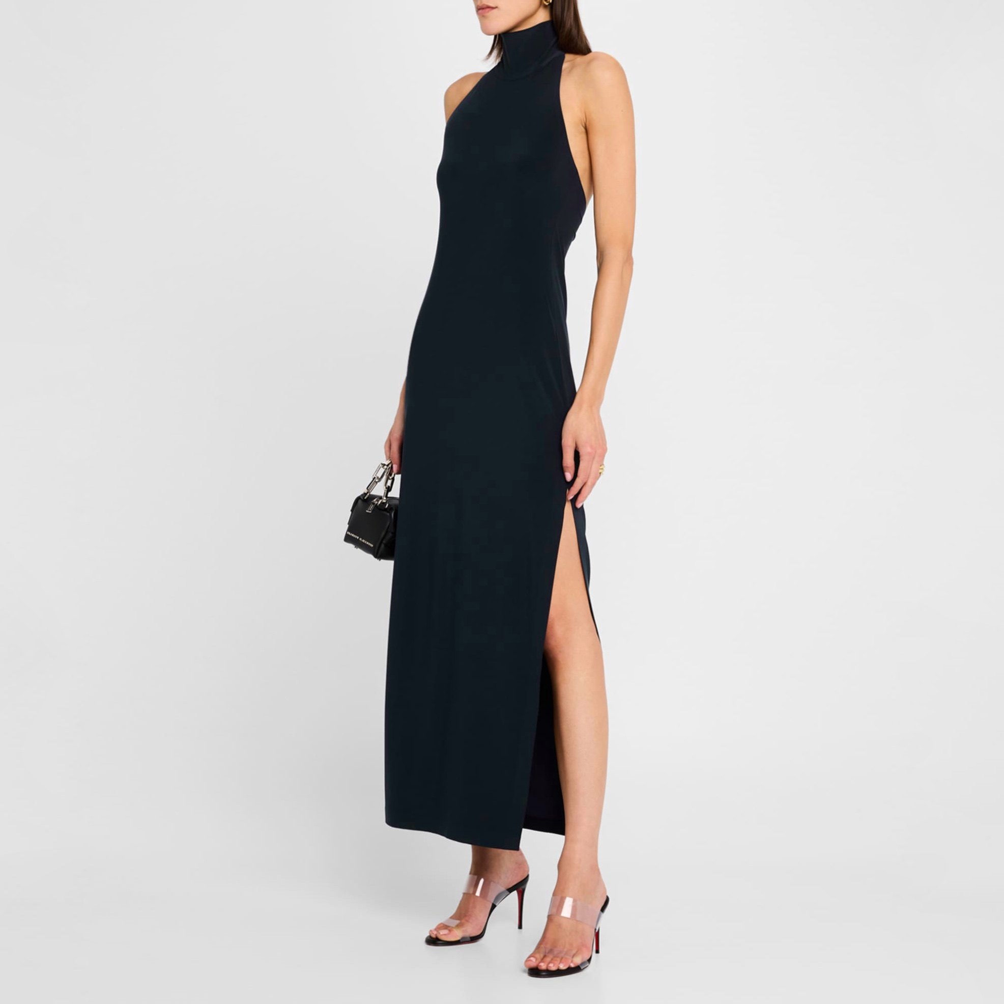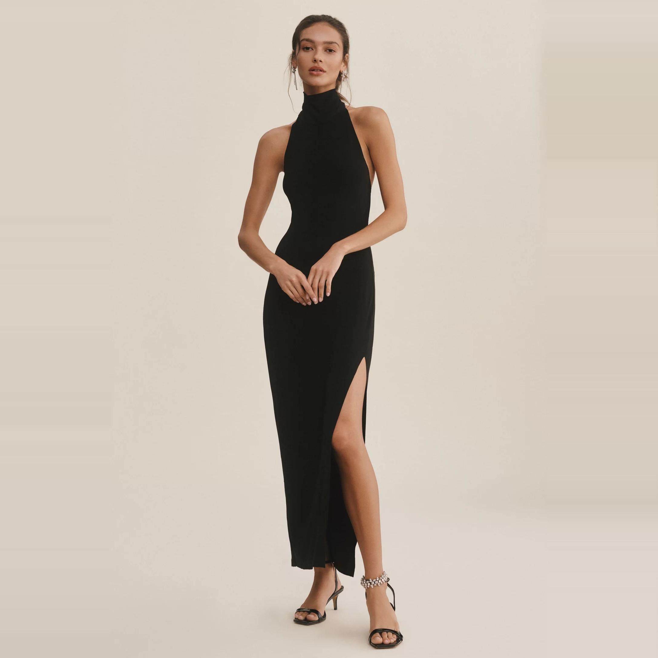 Kilonova法式复古气质闪闪挂脖开衩连衣裙女欧美辣妹性感修身长裙