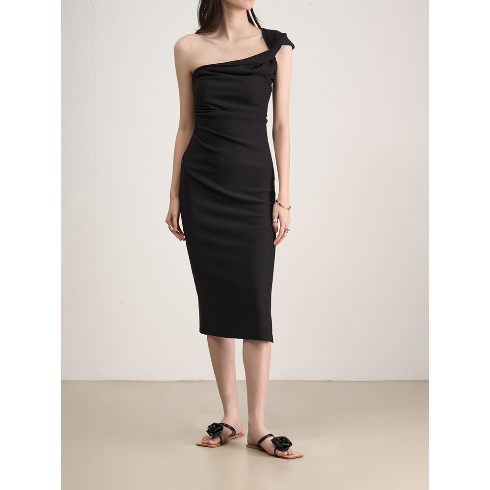 BECBRIDGE SOL 斜肩不对称优雅修身长款开衩连衣裙 BM-12720