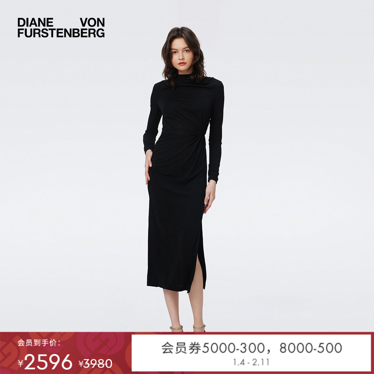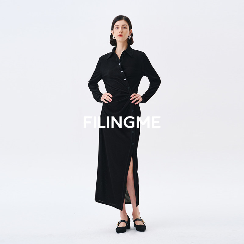 菲埃琳FILINGME 26春季新款醋酸针织衬衫式斜门襟修身开衩连衣裙