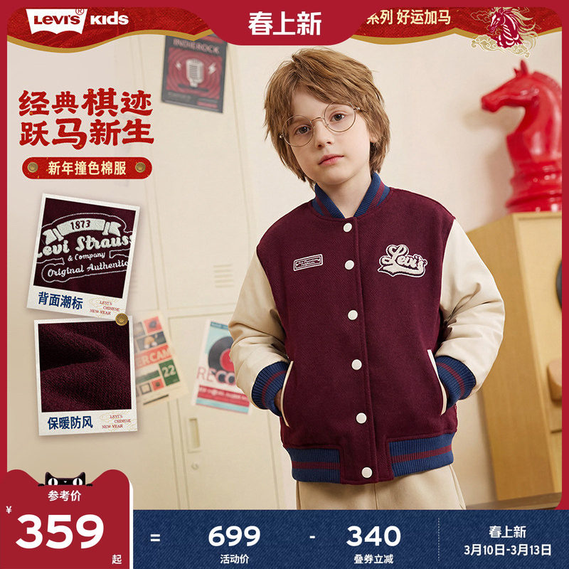 【新年马年】李维斯儿童外套男童棉服红色春季新款保暖加厚童装女