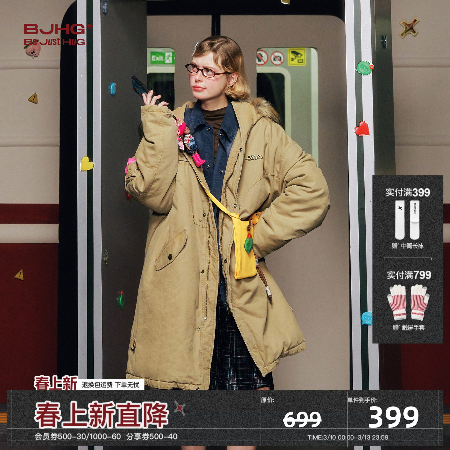 BJHG不计后果巴恩风工装长款棉服男款冬季外套厚毛领棉袄派克服女