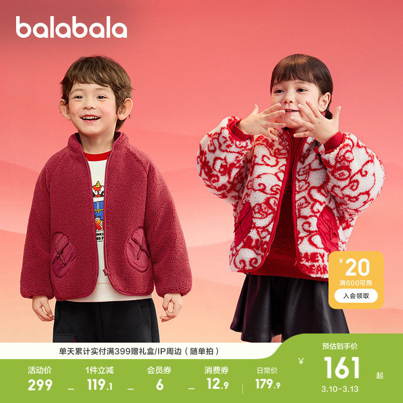 巴拉巴拉童装儿童棉衣男女童毛绒外套宝宝棉服冬装衣服红色拜年服