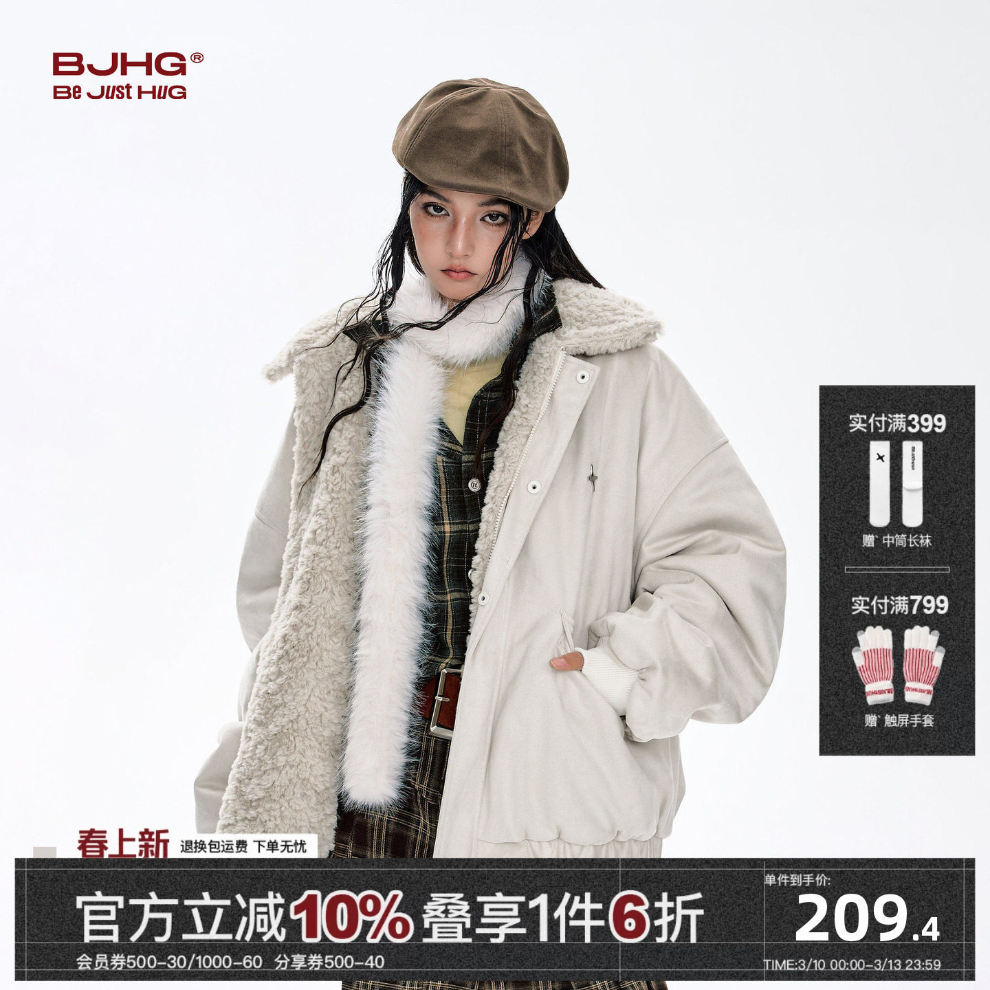 BJHG不计后果棉服男款冬麂皮绒棉衣潮牌美式情侣两面穿夹克外套女