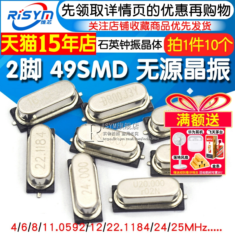 贴片晶振8M 49SMD 无源晶振 8MHz 11.0592 12 16 20石英钟振晶体