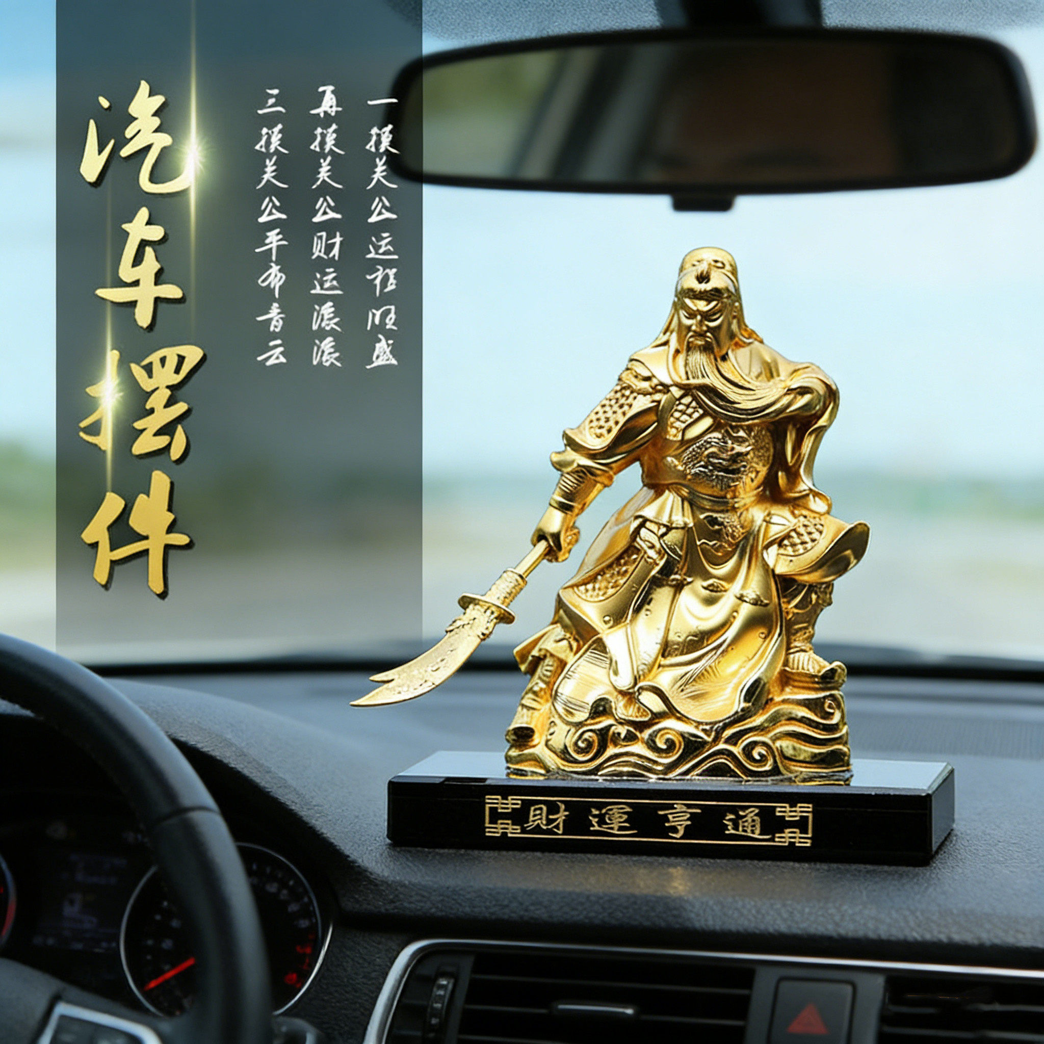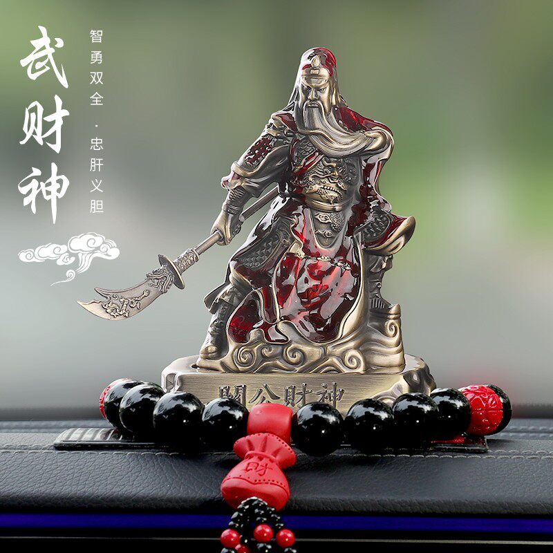 关公武财神车载摆件关羽像站立关二爷汽车中控台香水车内视频男士