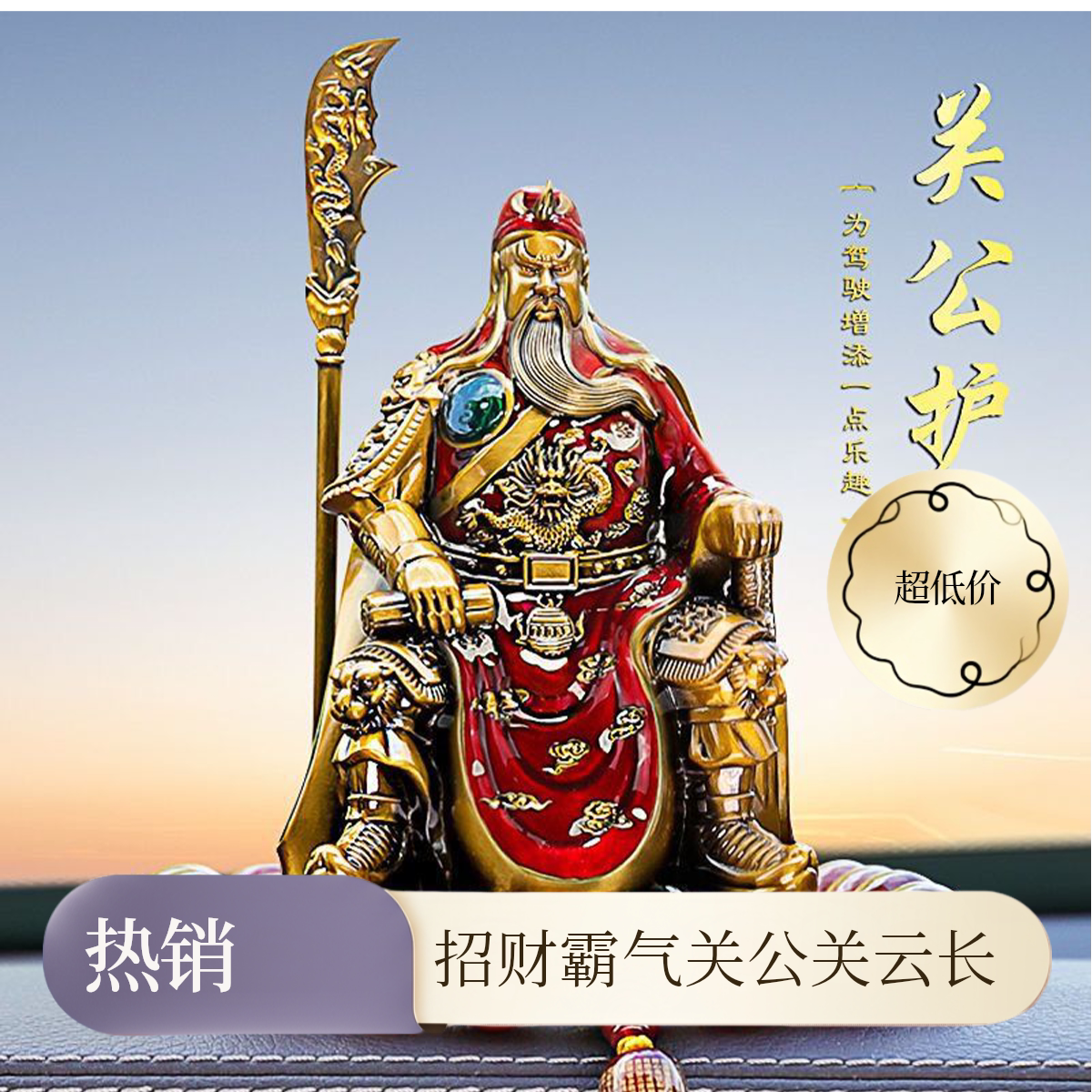 纯铜汽车摆件关公座式车载内用武财神创意男招财装饰品二爷保平安