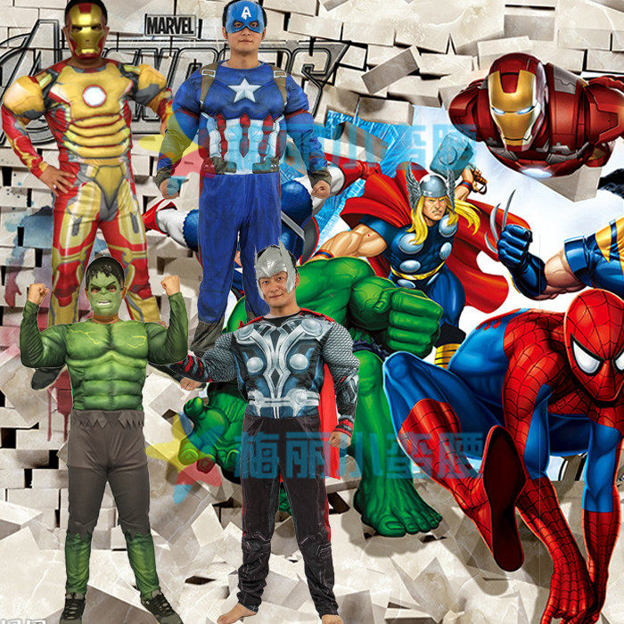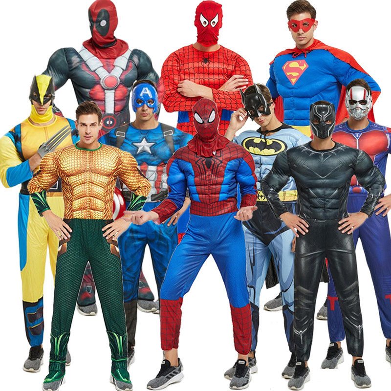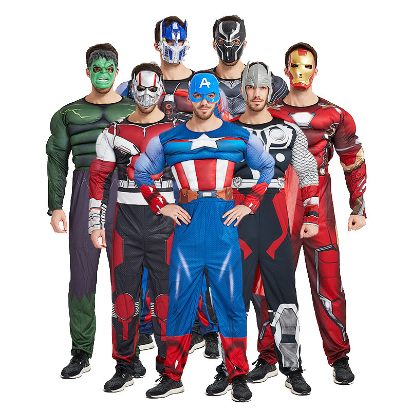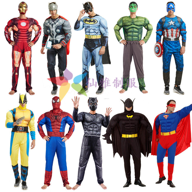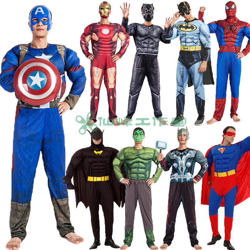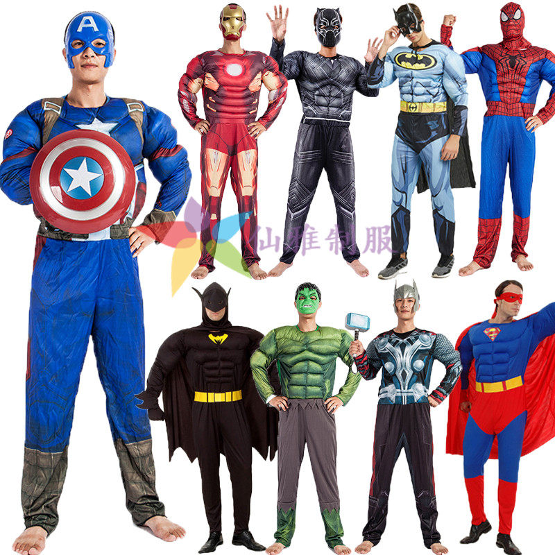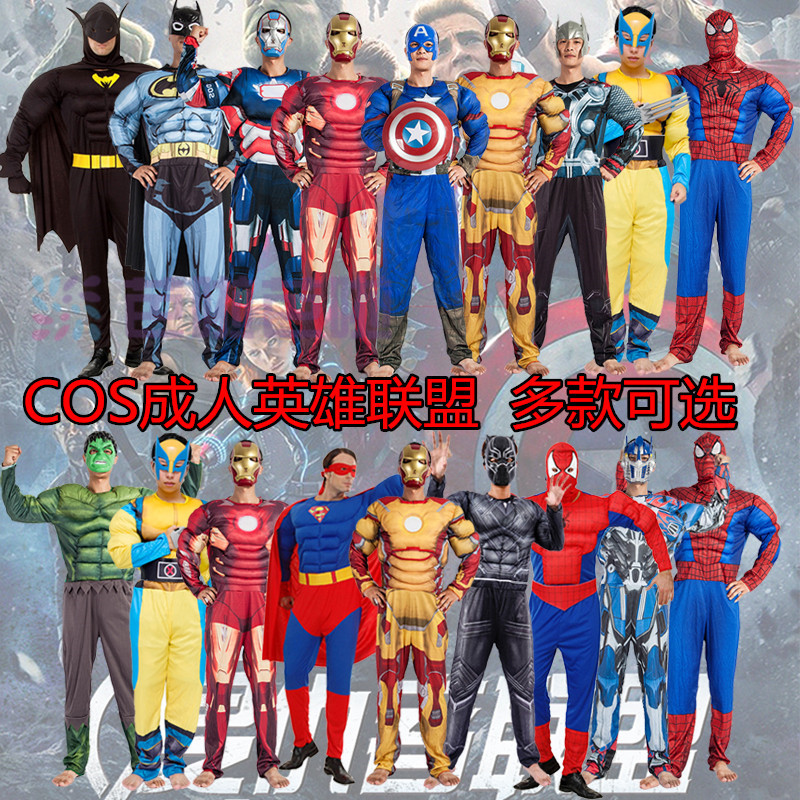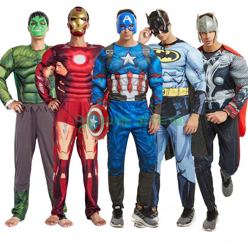 万圣节成人服装复仇者蝙蝠侠联盟套装肌肉超人衣服钢铁队长美国侠