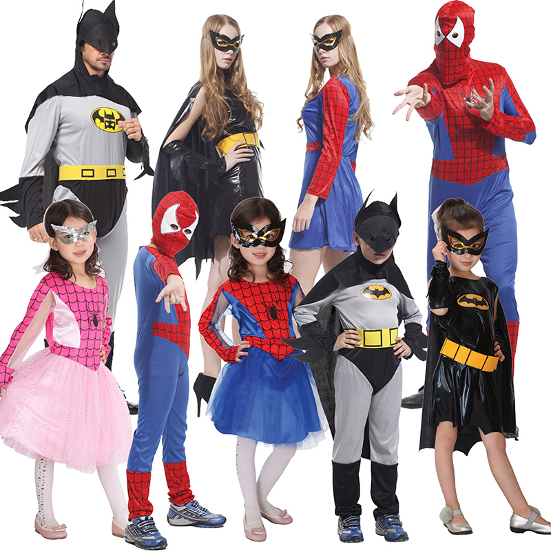 万圣节儿童服装蝙蝠侠蜘蛛侠表演服装男童女童成人男女演出服超人