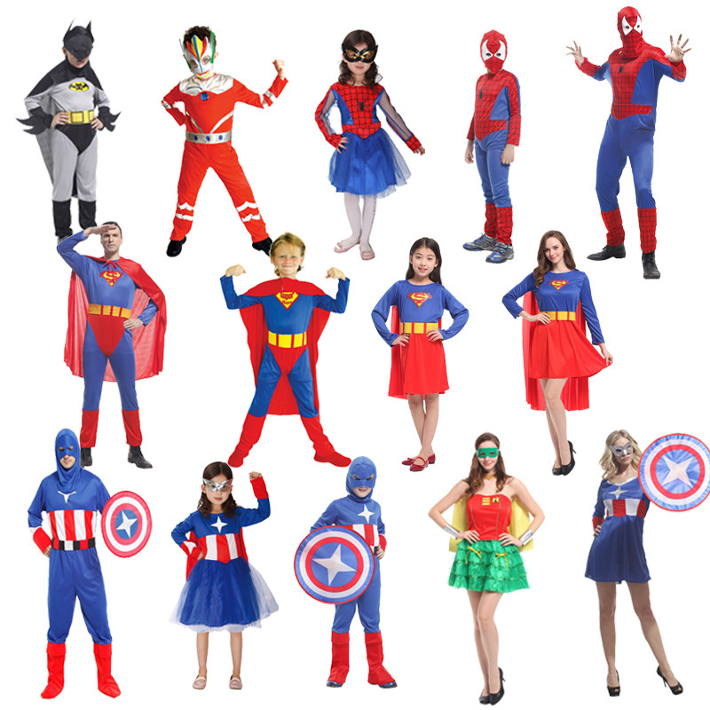 万圣节儿童成人男女服装美国超人队长蜘蛛蝙蝠侠演出奥特曼表演服