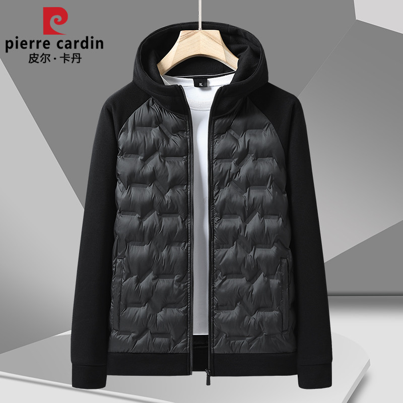 皮尔卡丹冬季户外开衫连帽棉衣男士运动休闲拼接加棉保暖时尚外套