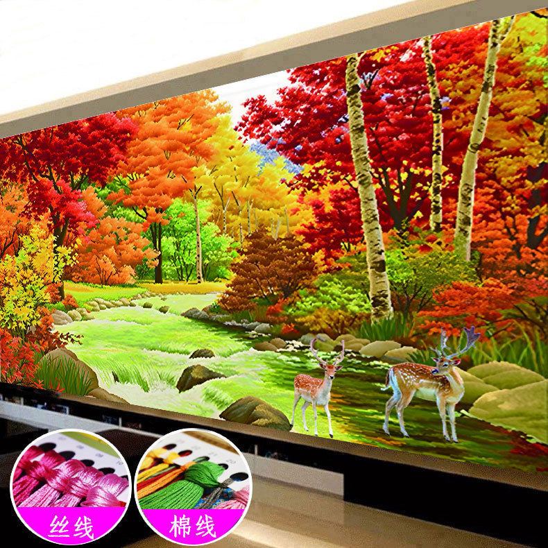 碧水金秋十字绣2024新款客厅卧室餐厅麋鹿风景流水生财手工自己绣