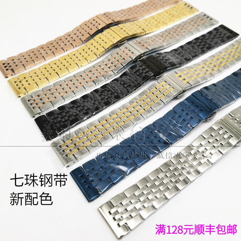 适用于CARTY钢表带T41七珠不锈钢表带12-24mm手表配件蝴蝶扣实心