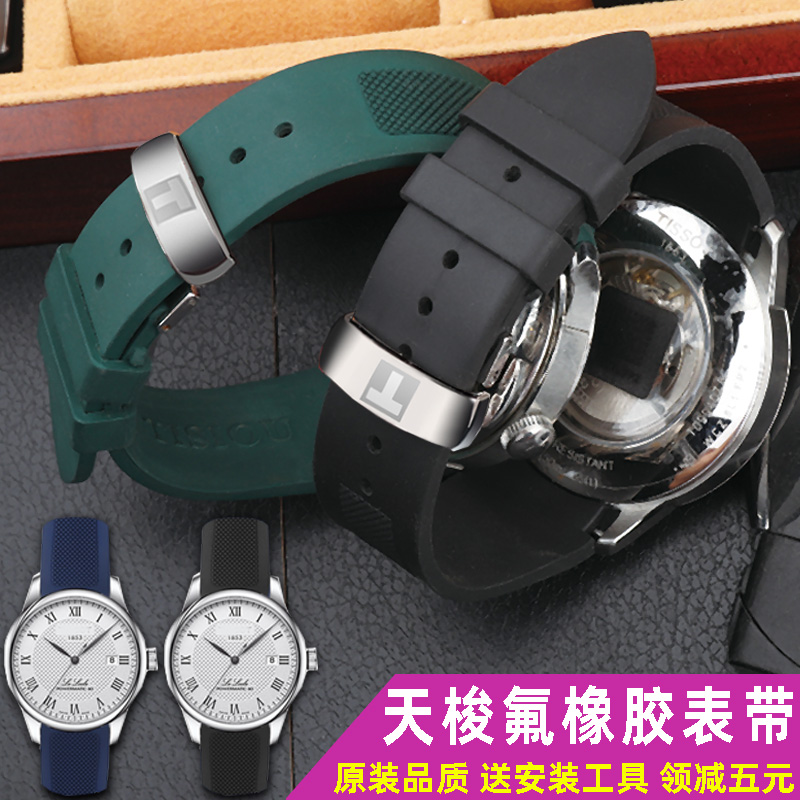 氟橡胶手表带适配天梭杜鲁尔T099力洛克T41罗西尼勋章男士19 21mm
