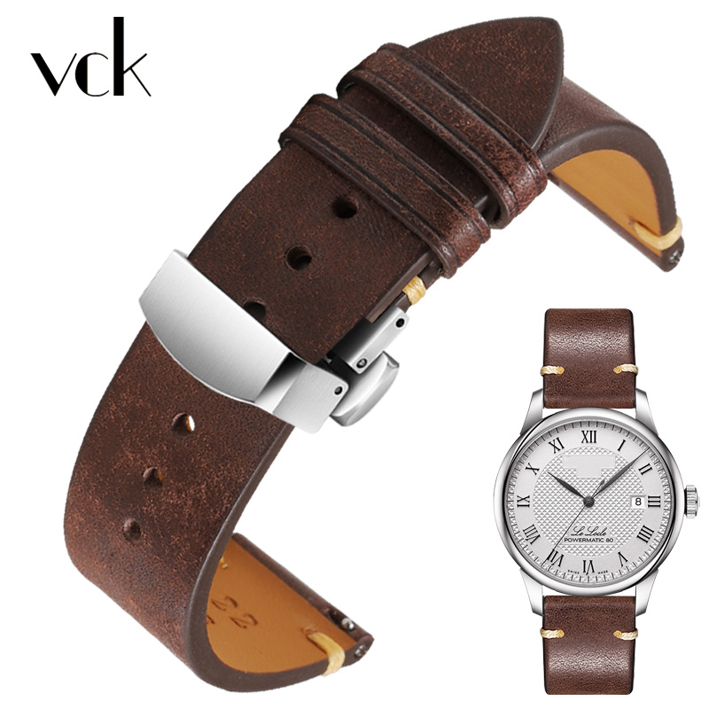 适用天梭表带真皮1853男士蝴蝶扣俊雅杜鲁尔T063/T41力洛克手表带