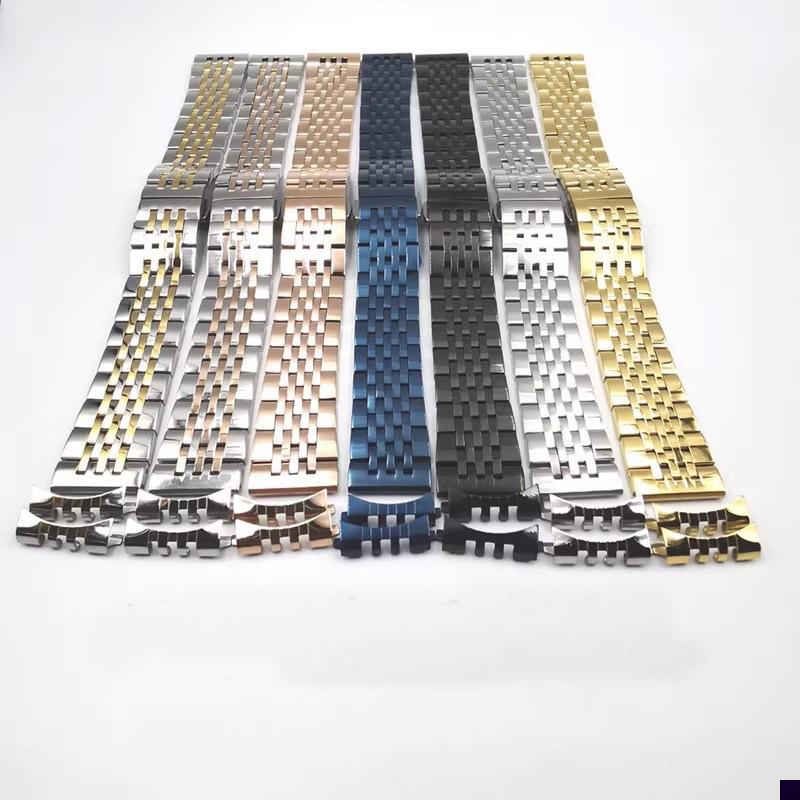 七珠实心钢带 T41男女通用手表带全钢蝴蝶扣不锈钢金属表链送弧口