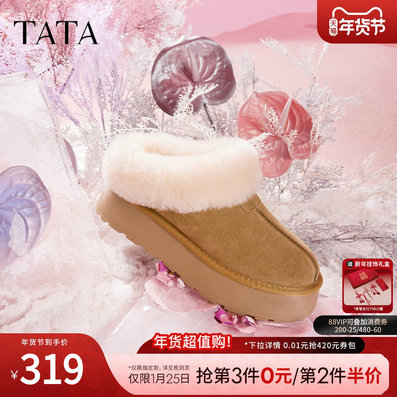 Tata他她牛奶面包雪地靴女靴子冬加绒厚底棉鞋保暖毛毛勃肯鞋子