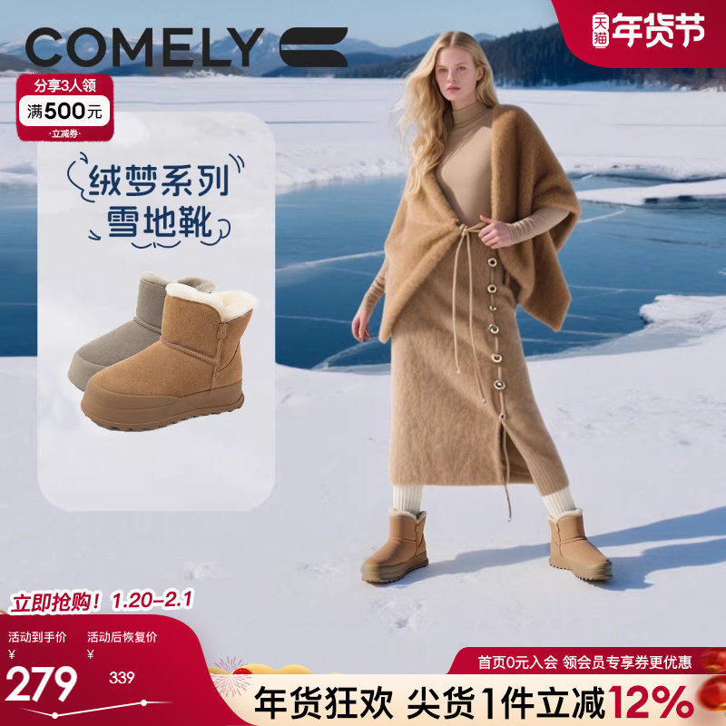 骆驼女鞋冬季鞋子厚底雪地靴女加绒鞋加厚保暖棉鞋靴子毛毛鞋短靴