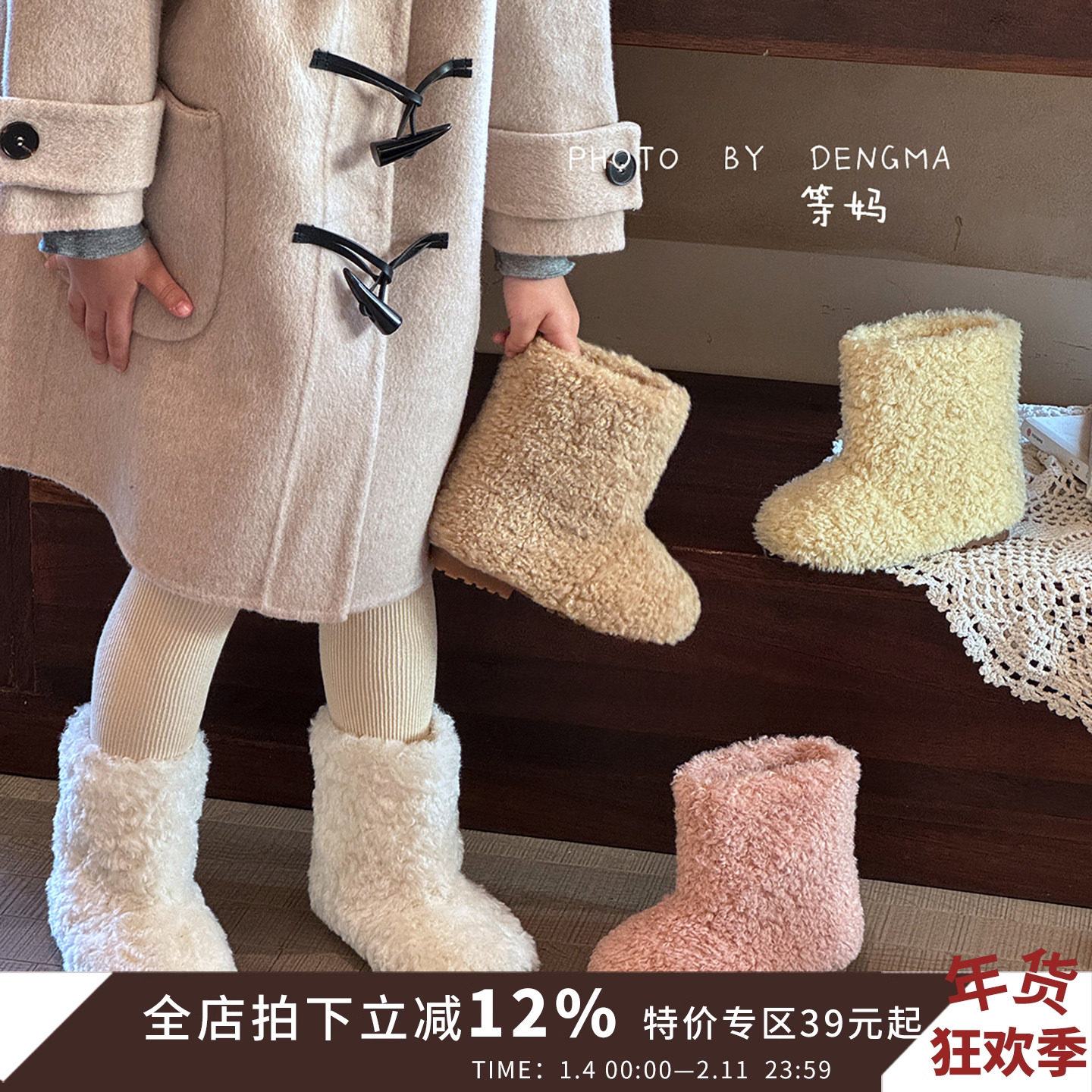 女童二棉鞋子儿童雪地靴勃肯2025秋冬季新款毛毛加绒宝宝冬鞋大童