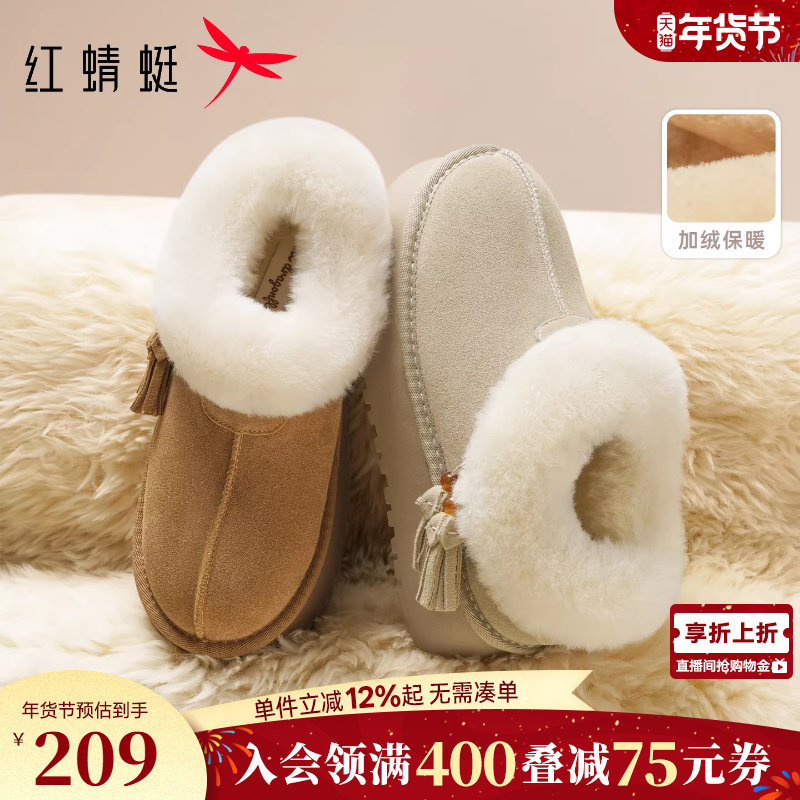 红蜻蜓雪地靴冬季鞋子女鞋厚底加绒毛毛鞋保暖短筒棉鞋面包鞋女款