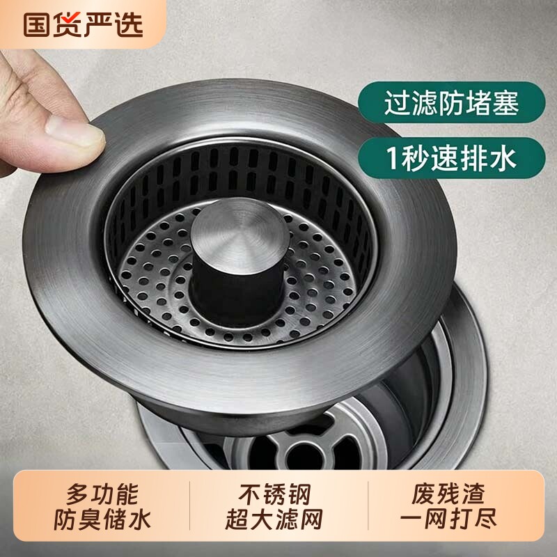 不锈钢厨房水槽过滤网洗碗池漏水塞洗菜盆通用款水槽弹跳芯下水器