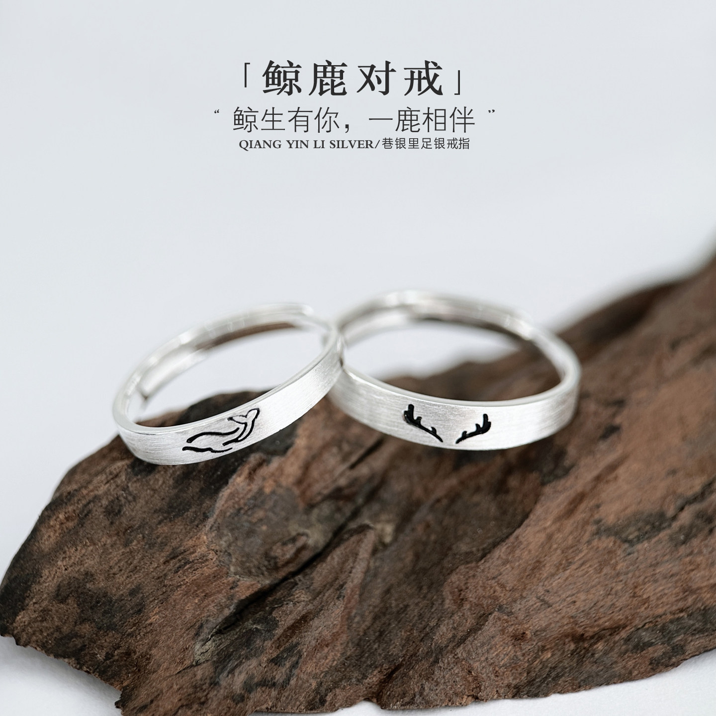 巷银里[鲸鹿]99足银情侣款对戒轻奢小众男女纯银戒指刻字生日礼物