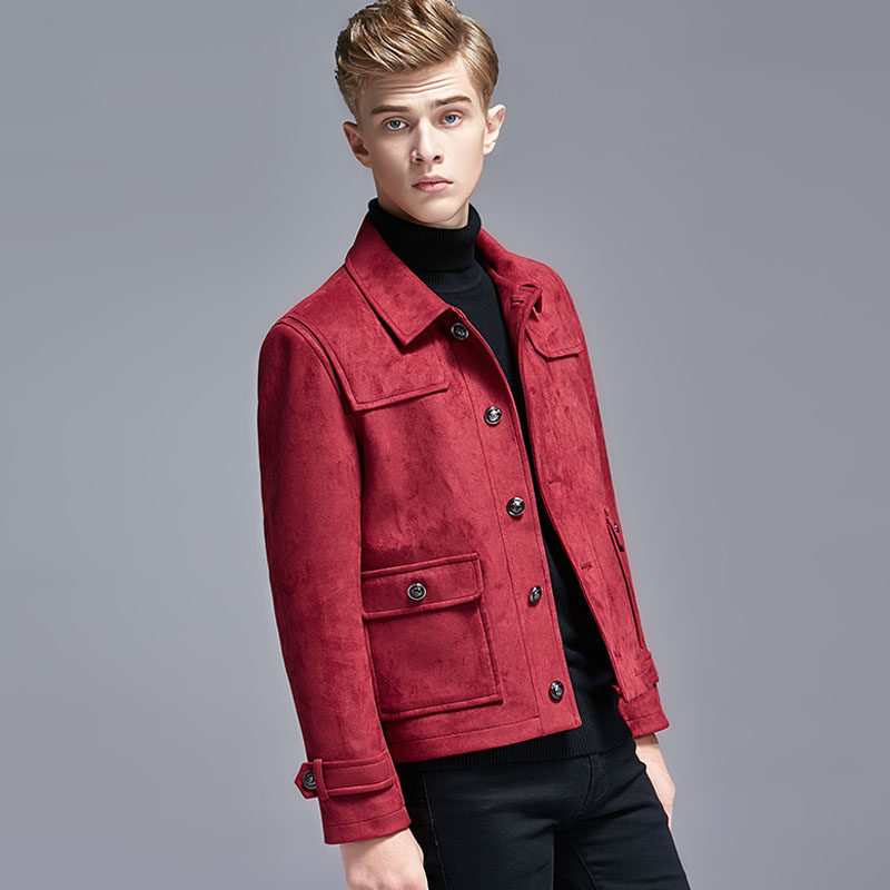 春秋新款鹿皮绒夹克男欧美简约英伦单排扣商务休闲时尚宽松短外套