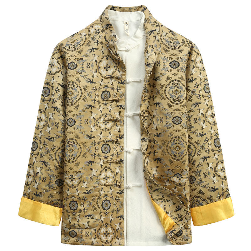 秋季唐装男士中国风盘扣时尚鹤鹿印花外套复古中式盘口外套男装潮