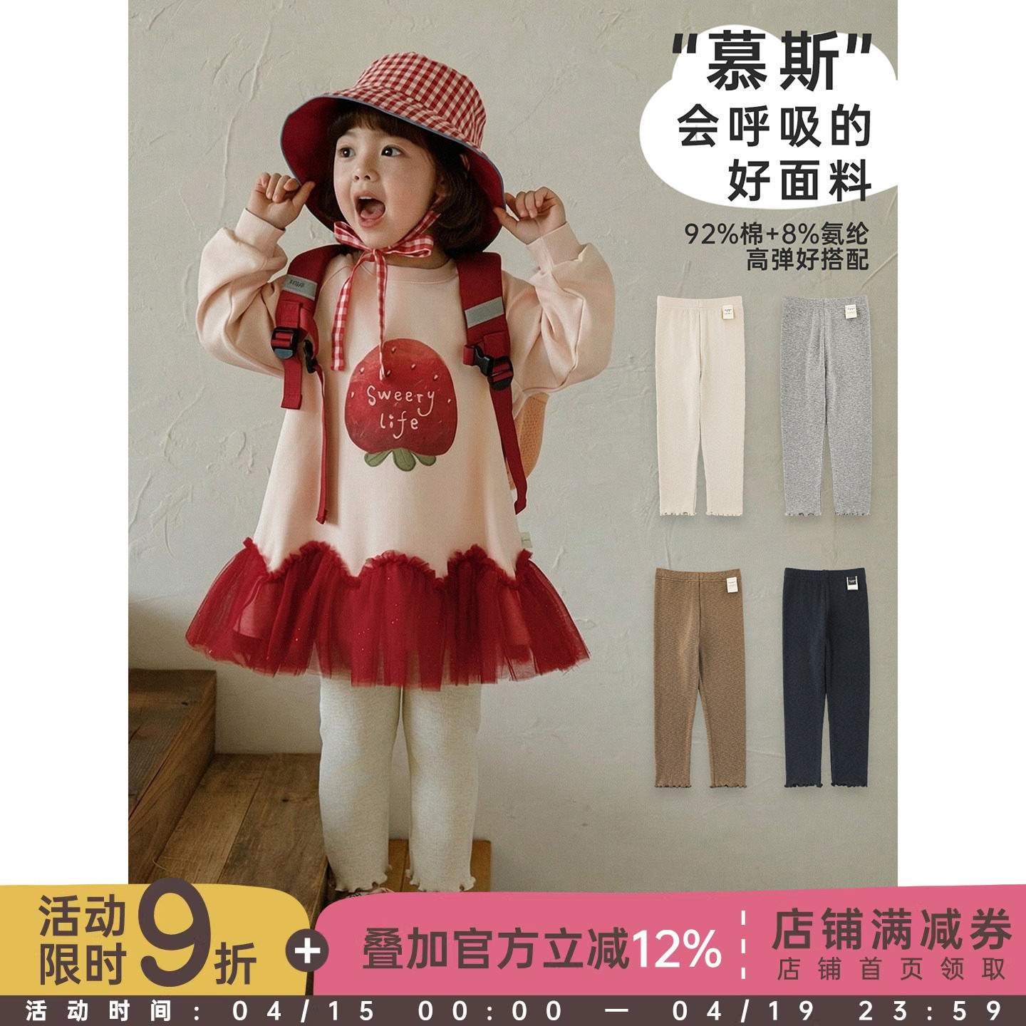 幼悠女童2026春季新款基础纯色针织打底裤保暖透气儿童百搭长裤潮
