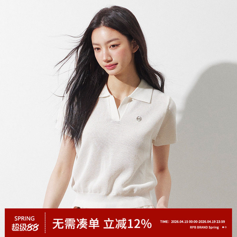 RPB BRAND网眼透气显瘦纯色简约百搭翻领短袖针织衫女上衣打底衫