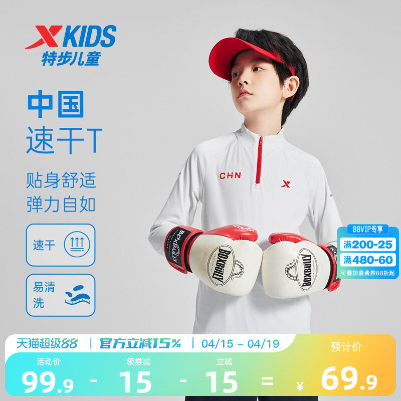 特步童装2026新款中大童半开襟儿童上衣男童纯色打底衫长袖针织衫