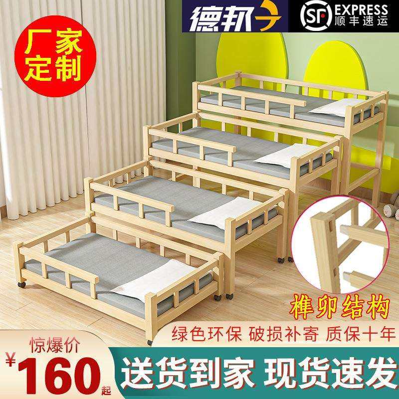 四层叠叠床原木午托床午睡床幼儿园托管班小学生松木上下床推拉床