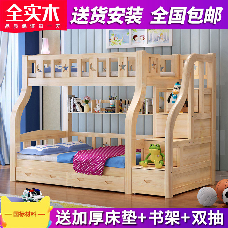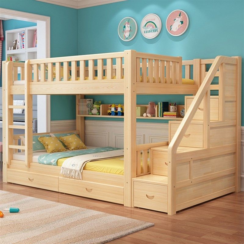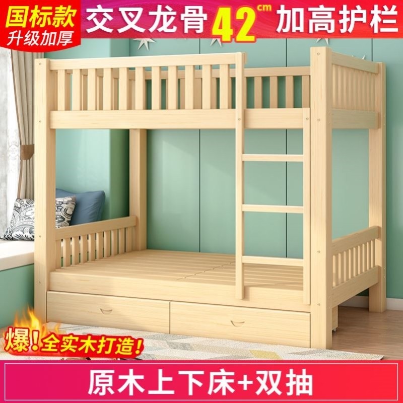 松木上下床双层床双人床宿舍上家用儿童床高低子母床实木加厚成人