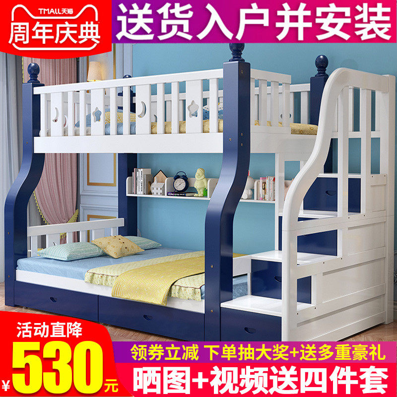 速发高低床1.5米全实木母子床儿童床上下铺成人1.8米松木上下床双